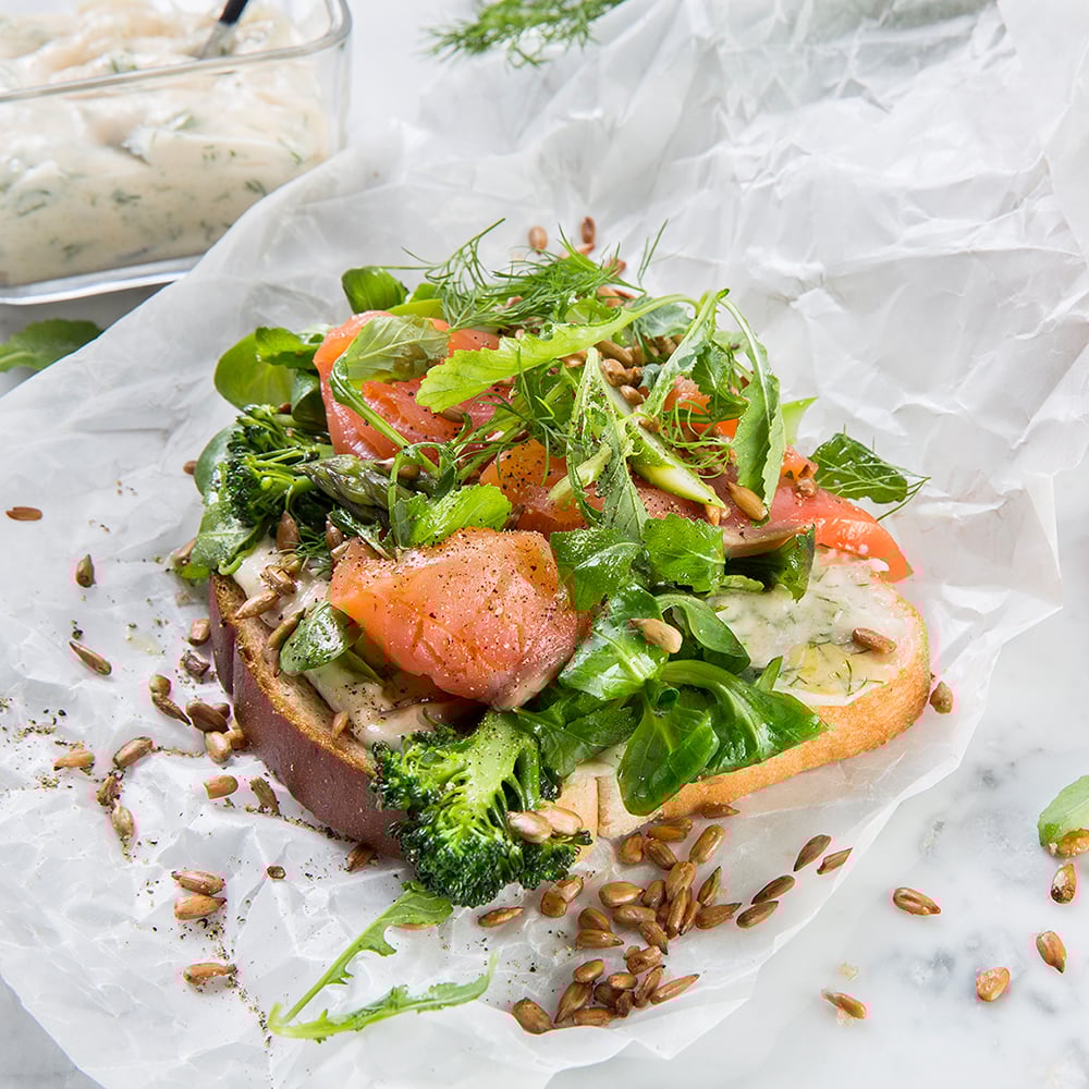 Lachssandwich mit Spargel und Brokkoli